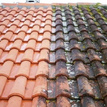 Élimination des salissures, pollution, traces noires et micro-organismes.Démoussage & traitement anti-mousse : Suppression des mousses, lichens et algues sur façades, toitures et terrasses.