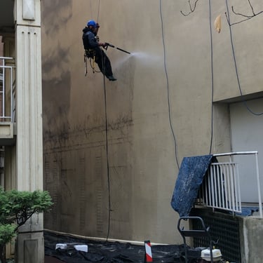 Hydrofugation de façade : Application de traitement hydrofuge incolore après nettoyage pour protéger durablement les supports.
