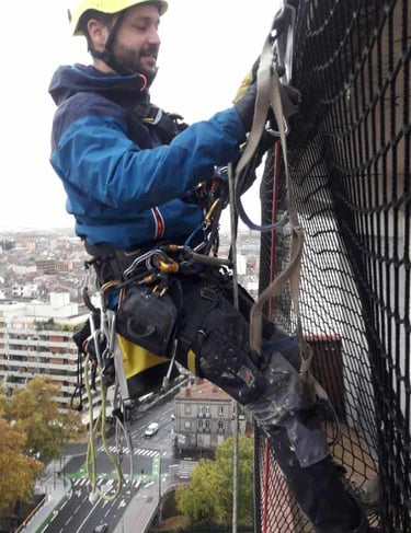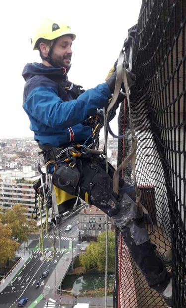 Fort de près de 10 années d’expérience dans le travail en hauteur, nous mettons notre expertise au service de nos clients à travers Cordaxis, société spécialisée dans les travaux urbains sur cordes. Techniciens cordistes qualifiés, nous intervenons avec rigueur et professionnalisme pour répondre aux besoins d’inspection, de maintenance et de sécurisation des ouvrages en hauteur et difficiles d’accès. Animés par la passion et le goût du travail bien fait, nous allions technicité, sécurité et efficacité pour offrir à nos clients des prestations de qualité, adaptées à chaque situation..