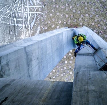 Inspection technique en hauteur par cordistes qualifiés, documentée par un rapport photographique afin de faciliter le suivi, la maintenance et la prise de décision.