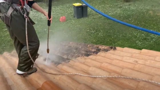 Le nettoyage haute pression offre un résultat immédiat et spectaculaire, mais doit être utilisé avec précaution pour éviter d’endommager les tuiles.