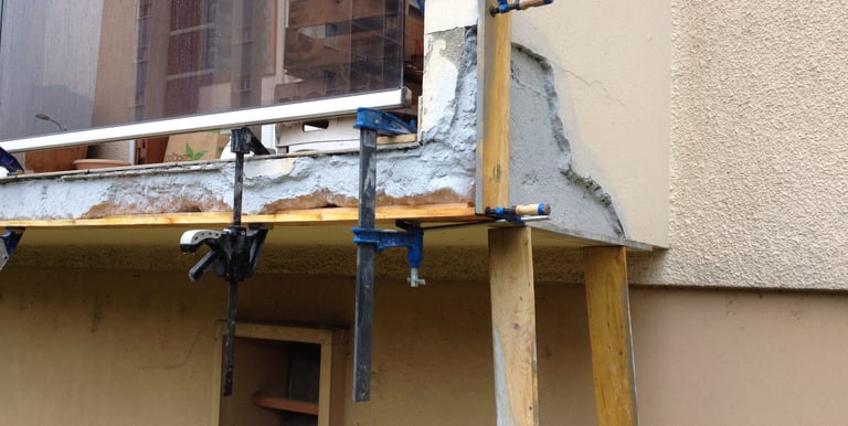 Nous réparons les épaufrures (éclat de béton), reprise d’enduit en hauteur, pose de parement et tout autre élément de maçonnerie en hauteur et difficile d’accès.